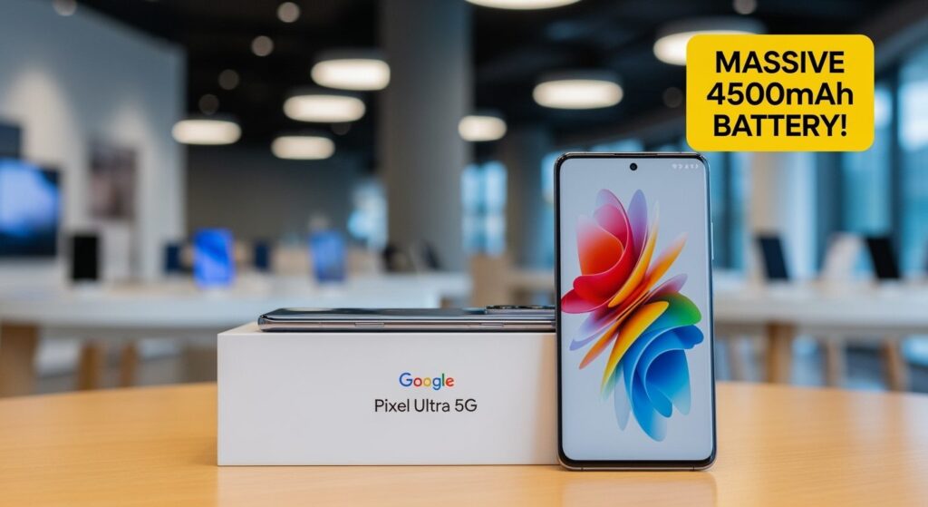 Google ने पेश किया नया 5G स्मार्टफोन – 4500mAh की बड़ी बैटरी, 256GB स्टोरेज और पावरफुल परफॉर्मेंस के साथ जो इसे प्रीमियम सेगमेंट में एक मजबूत दावेदार बनाता है। 4500mAh की बैटरी आपको पूरे दिन की बैटरी लाइफ देती है, जिससे आप बिना किसी चिंता के अपने फोन का इस्तेमाल कर सकते हैं। 256GB का स्टोरेज आपको अपनी सभी फोटो, वीडियो और ऐप्स स्टोर करने के लिए पर्याप्त जगह देता है। इसके अलावा, इसका पावरफुल प्रोसेसर मल्टीटास्किंग और हैवी गेमिंग के लिए बिल्कुल परफेक्ट है।